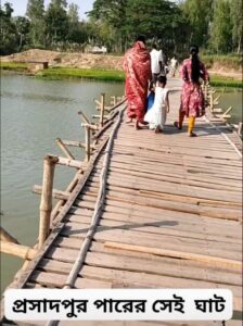 নওগাঁ মান্দায় শুষ্ক মৌসুমে বাঁশের সাঁকো, বর্ষায় ভরসা নৌকা।