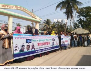 এদিকে বামনা উপজেলা পরিষদের সামনে নিহত ওই প্রসুতির স্বামীসহ তার পরিবারের পক্ষে ওই দিন দুপুরে আসামীদের গ্রেপ্তার ও দৃষ্টন্তমুলক শাস্তির দাবীতে পাল্টা মানববন্ধন করেছেন।